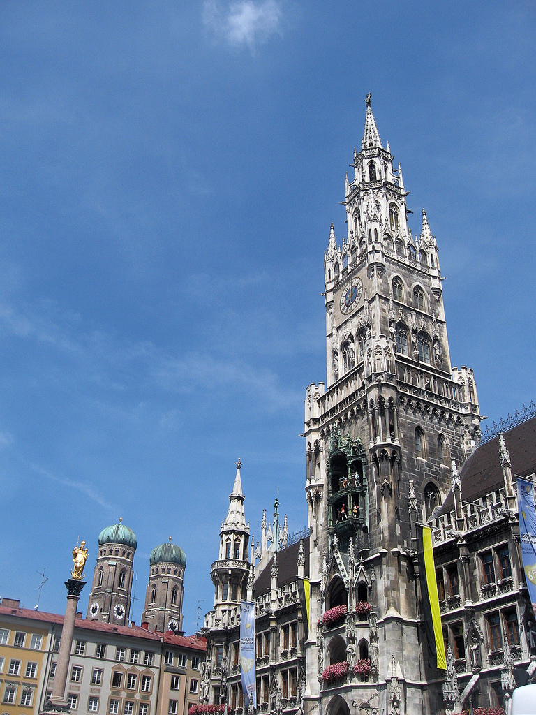 La ciudad es conocida sobre todo por su Oktoberfest, pero tiene también una importantísima oferta cultural. Por lo que respecta a las tiendas, destacan sus outlets de gama alta y, para los que gusten de productos tradicionales, de artesanía bávara. Para mejorar: los horarios comerciales. En la imagen el Ayuntamiento Nuevo y los campanarios de la Iglesia de Nuestra Señora
