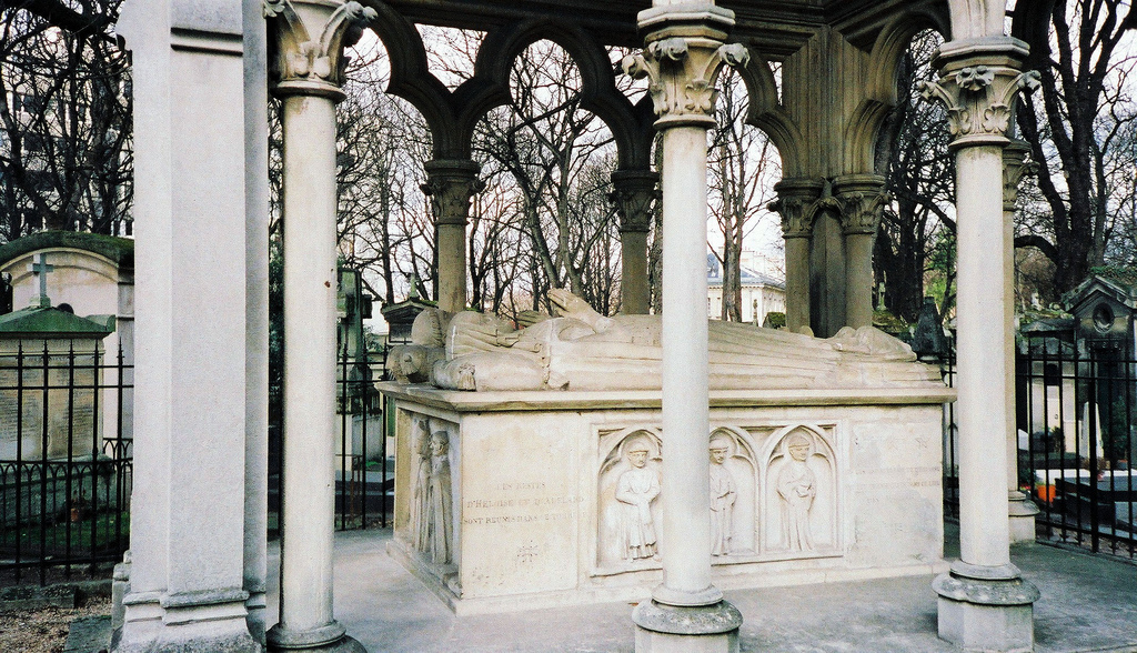 El cementerio Père Lachaise es, pese a su mortuorio carácter, uno de los lugares más románticos de París, y su punto cumbre a este respecto es la tumba de los amantes medievales Abelardo y Eloísa, la más antigua historia de amor de París. Por cierto, que el tema acabó bastante mal: ella metida a monja y él castrado. Toda una advertencia