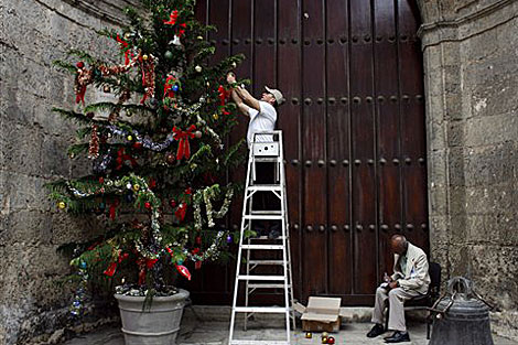 Este árbol de Navidad situado en la puerta del Palacio de Capitanes Generales de La Habana es de las pocas muestras navideñas que se encuentran en estas fechas en La Habana. En la isla no se encuentra un ambiente navideño especial pero el agradable y caluroso clima hace que sea un lugar muy visitado en estas fechas.