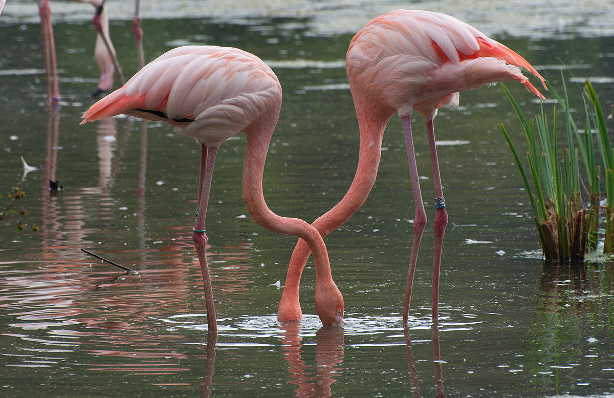 Unos de los habitantes de los jardines del castillo es una bandada de hermosos flamencos