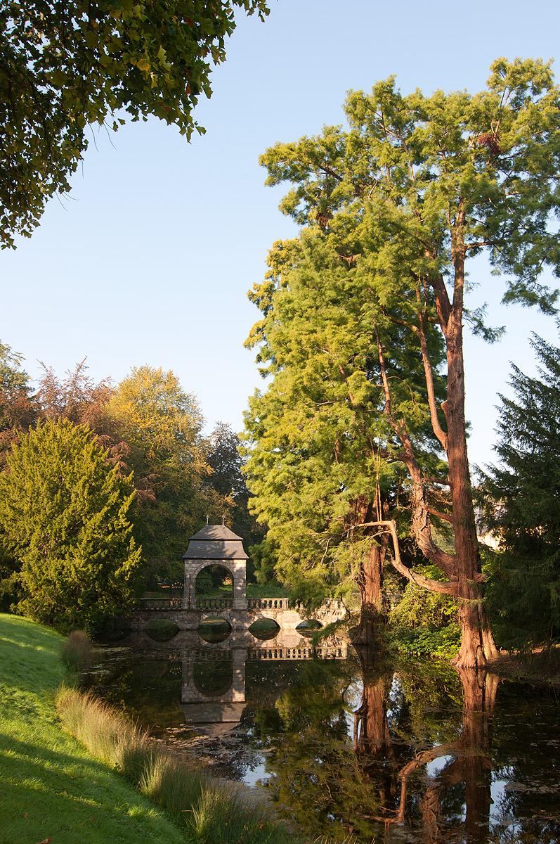 Un el espectacular rincón del jardín, junto a la ría que cierra el paso al castillo