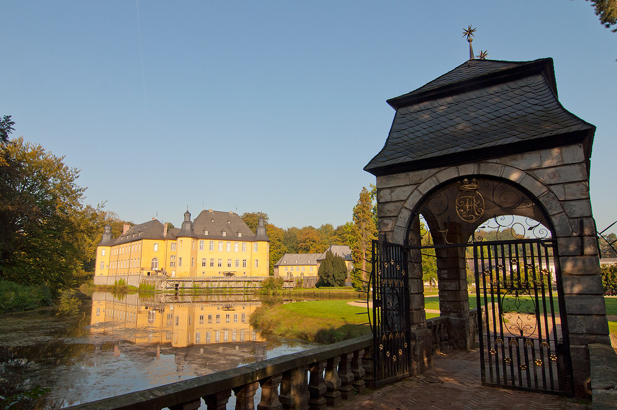 La recia torre a través de la que se accedía al recinto interior del Dyck Schloss