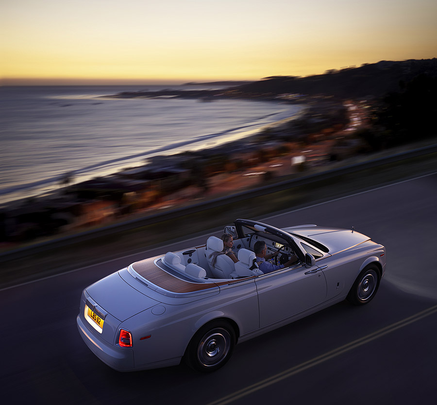 Una evocadora imagen del Phantom Series II descapotable circulando por la costa