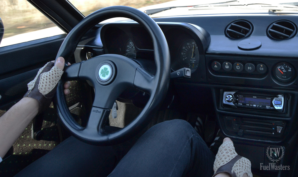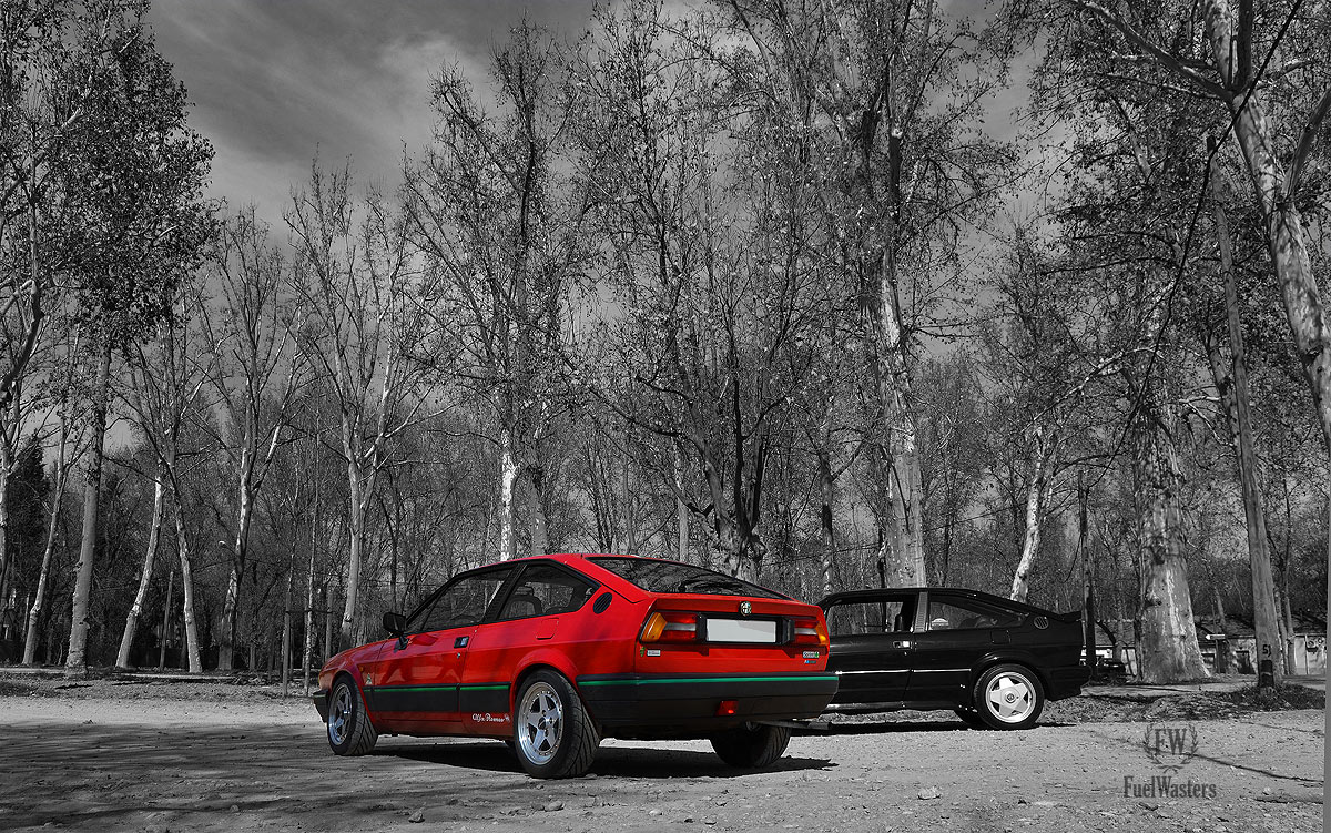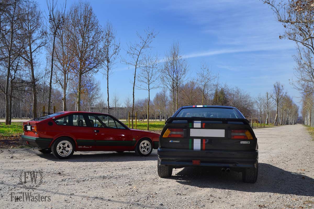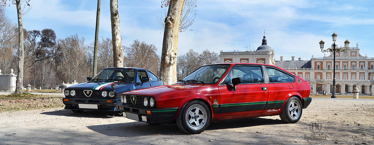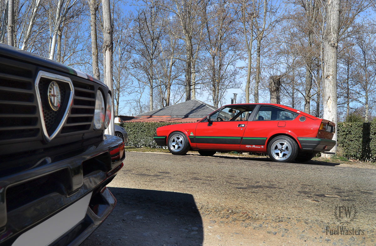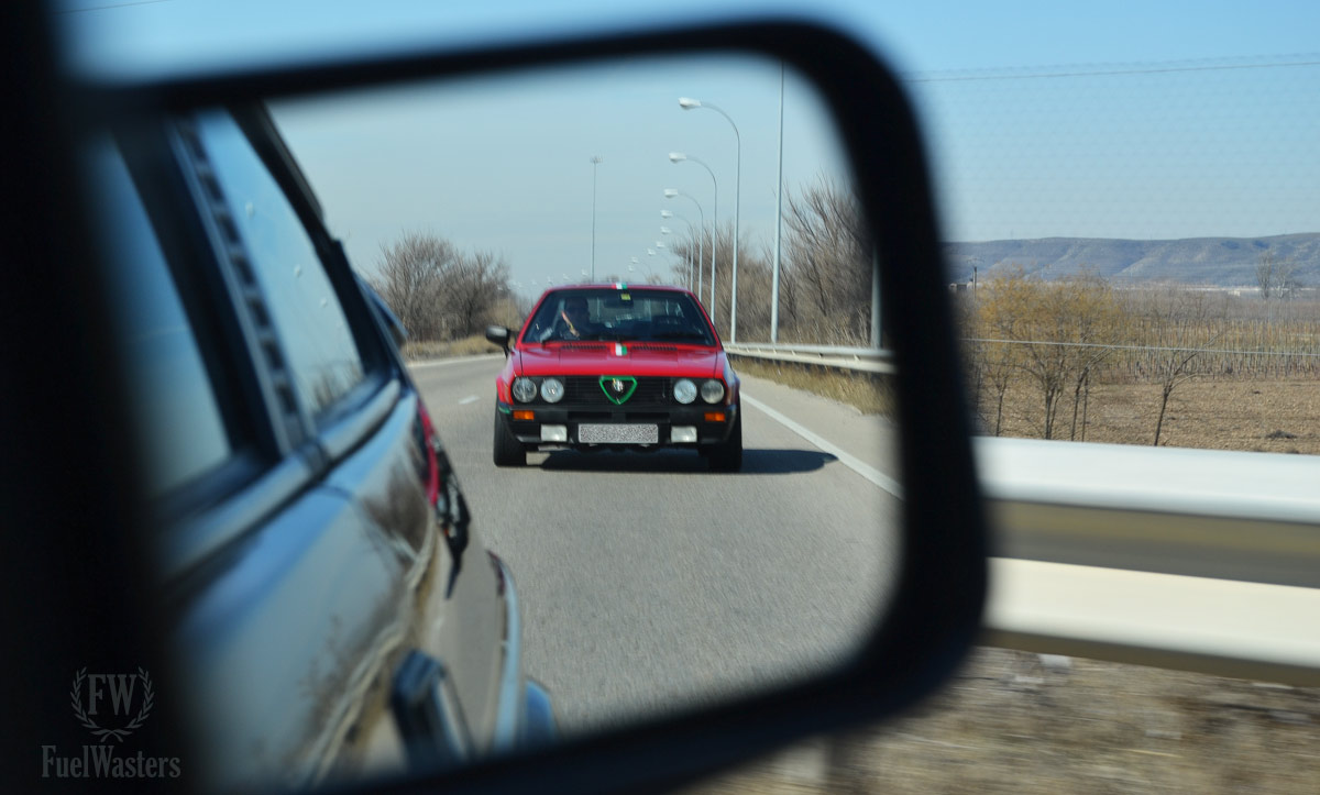 Un momento de la prueba, con un Alfa Romeo Sprint en el espejo