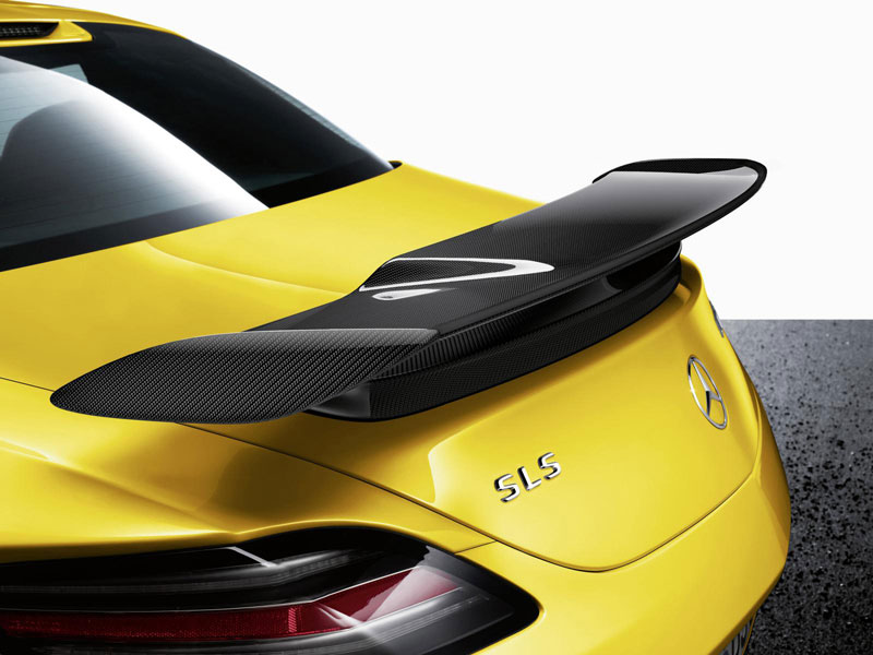 El elemento más llamativo es el alerón trasero fijo, que sustituye al móvil que utilizan los SLS AMG convencionales.