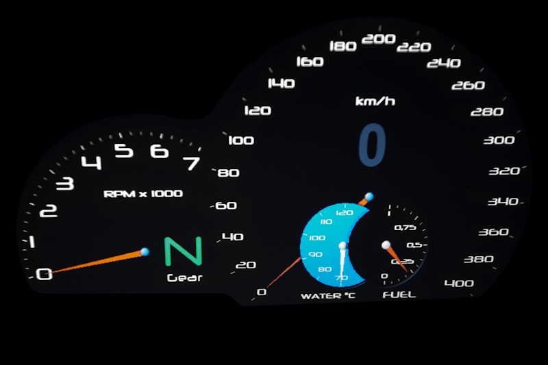 El GTA Spano no tiene retrovisor central, sino una cámara trasera que se proyecta sobre una pantalla LCD integrada en el salpicadero.