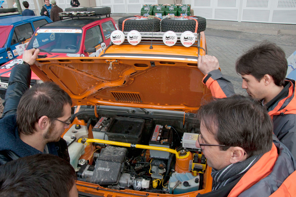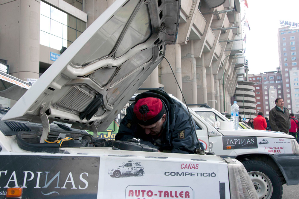 Uno de los participantes ultima la puesta a punto de su vehículo.