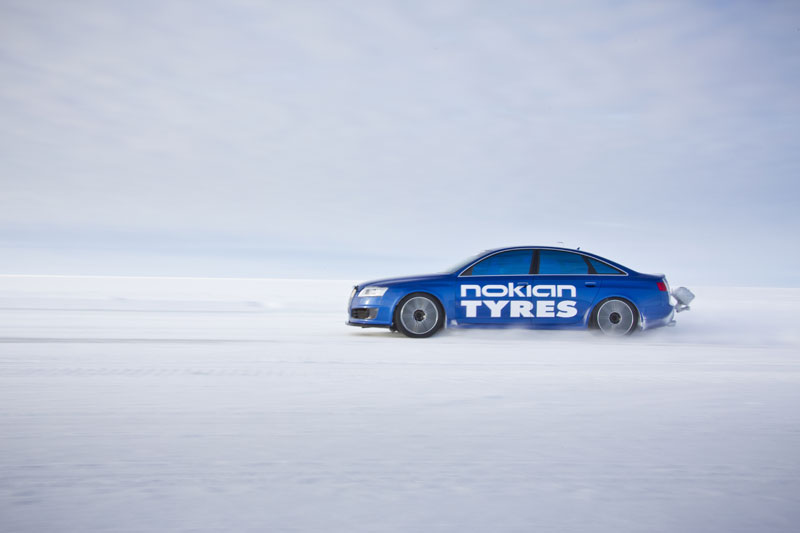 Para llevar a cabo el intento, Nokian creó una pista de hielo de 12 kilómetros de longitud en el Golfo de Botnia, en Finlandia.