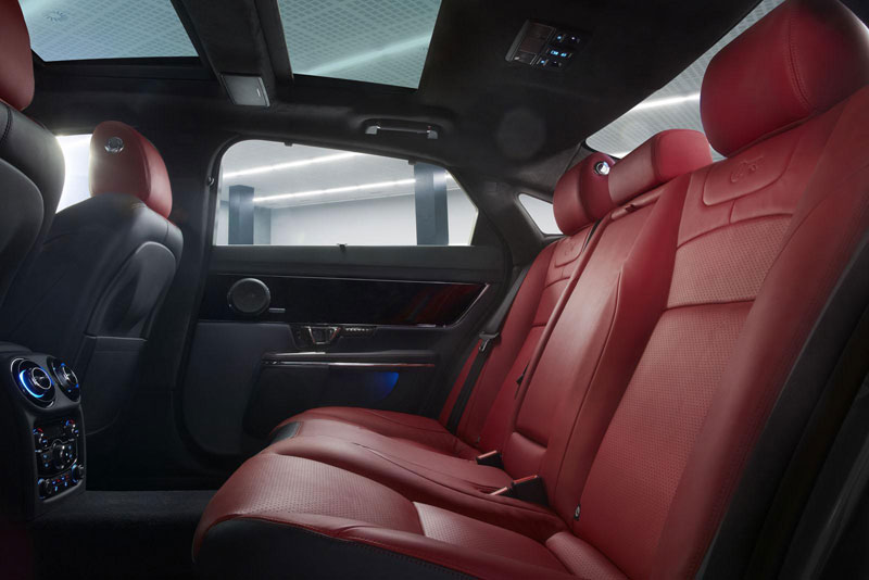 Los ocupantes de la parte trasera del Jaguar XJR cuentan con el espacio y la comodidad de una limusina... Dentro de un ambiente casi de carreras.