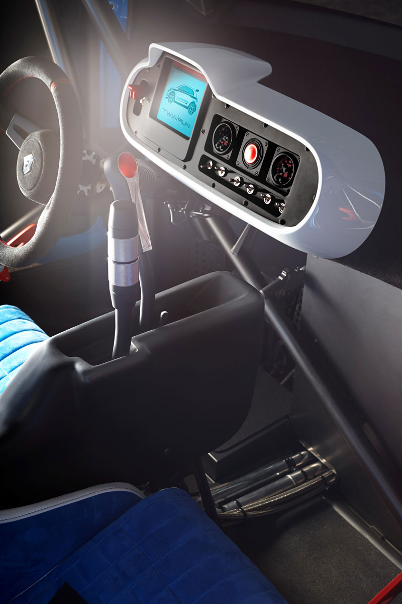 Una jaula de seguridad, un volante, dos asientos, una pantalla con información... Como un coche de rallys.