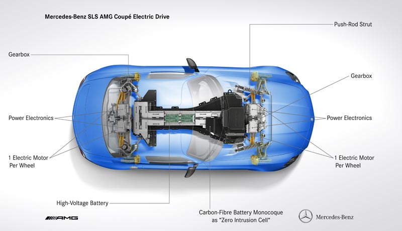 Cuenta con cuatro motores eléctricos, uno en cada rueda, que desarrollan una potencia total de 740 caballos.