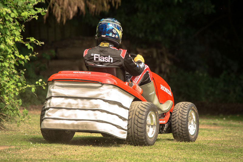 Con ruedas y suspensiones de quad, un motor de motocicleta y un chasis tubular, Honda ha creado este cortacésped que supera los 200 km/h.