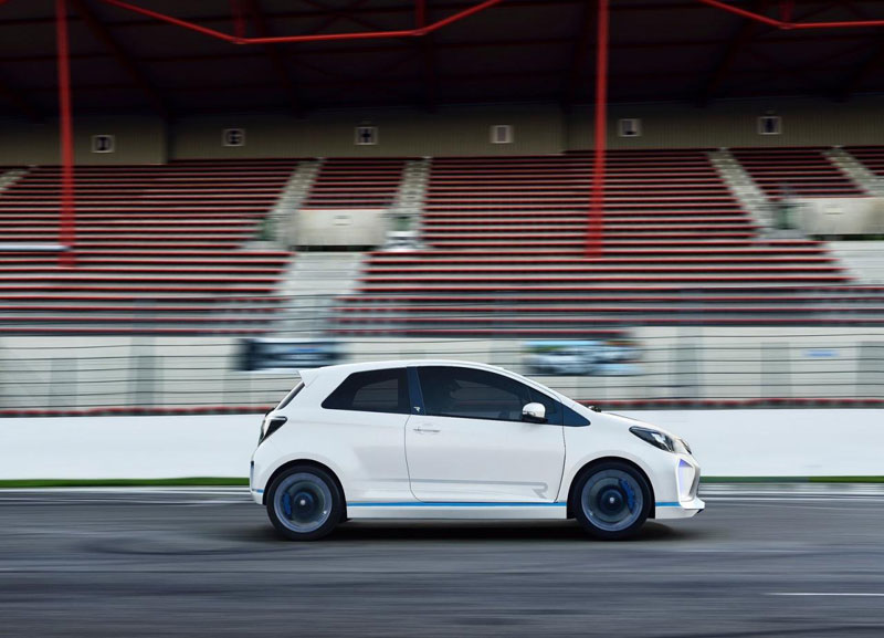 Los detalles negros y azules contrastan con el blanco de la carrocería.