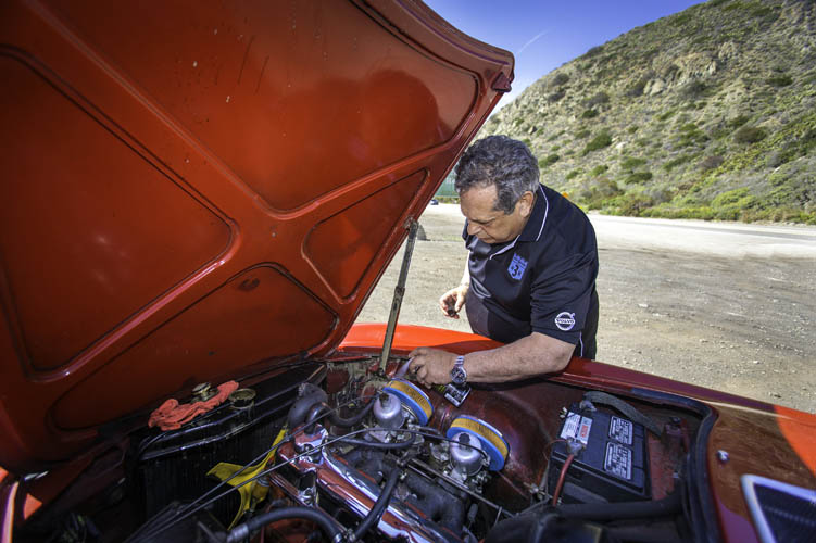 Irv Gordon revisa cuidadosamente cada elemento del coche para mantenerlo a punto.
