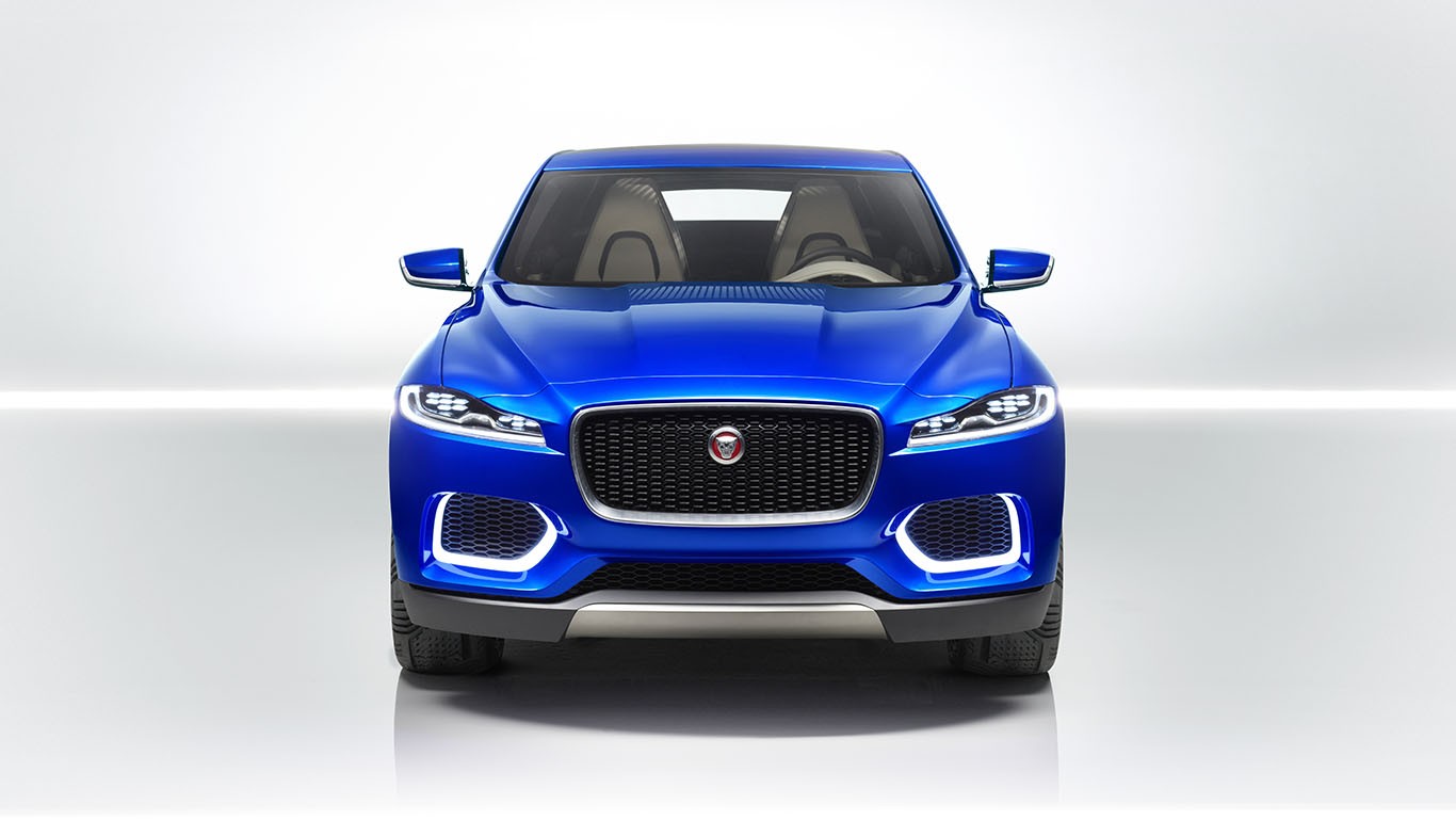 El frontal del Jaguar C-X17 Concept luce un diseño claramente inspirado en el del resto de productos de la firma, como el XF o el F-Type. La parrilla delantera y las diferentes entradas de aire parecen a un panal de abejas, que además cuenta con iluminación LED para conducción diurna en las aberturas más externas.
