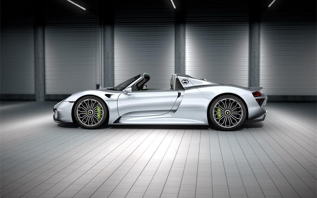 El 918 Spyder es un automóvil deportivo biplaza con motor central diseñado por Michael Mauer. Está propulsado por un motor V8 de 4,6 litros . El motor se basa en la misma arquitectura que la utilizada en el Prototipo coche de carreras RS Spyder Le Mans. El motor pesa 140 kg de acuerdo con Porsche y entrega 608 caballos de fuerza.