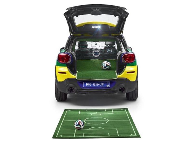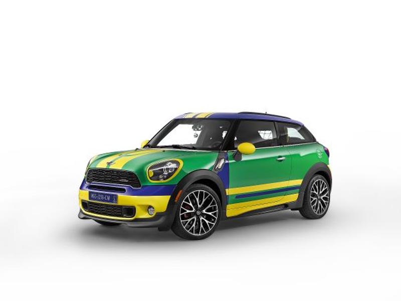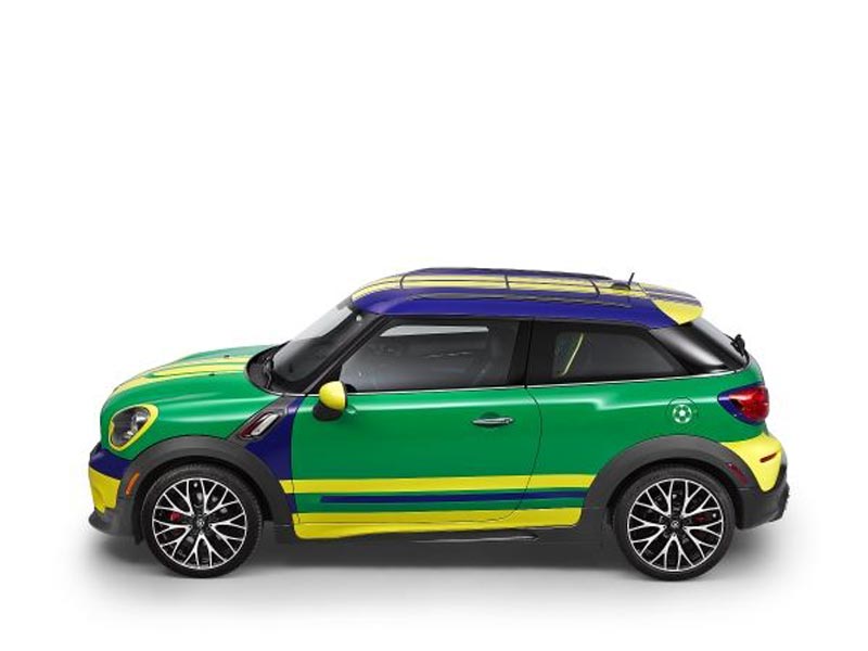 El Mini Paceman GoalCooper está decorado con los colores de la bandera brasileña.