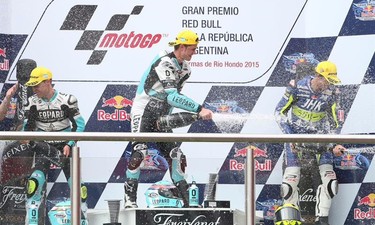 El piloto francés estuvo acompañado en el podio por el español Alex Rins y al británico Sam Lowes.