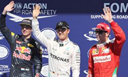 Nico Rosberg (c) saluda, junto a Verstappen (i) y Raikkonen, tras lograr la pole position en Spa. | Cordon Press Tercera pole consecutiva para Nico Rosberg Nueva sanción para Alonso, que saldrá último en Bélgica Parrilla de salida