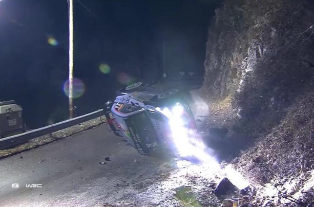Durante la primera especial de las dos programadas para hoy en la prueba monegasca el piloto neozelandés Hayden Paddon perdió el control de su Hyunday, que acabó volcado sobre el costado derecho en medio de la carretera, lo que obligó a los organizadores a cancelar la primera especial (Entrevaux-Val de Chalvagne-Ubraye, de 21,25 kilómetros). Tanto él como su copiloto, John Kennard, resultaron ilesos.
