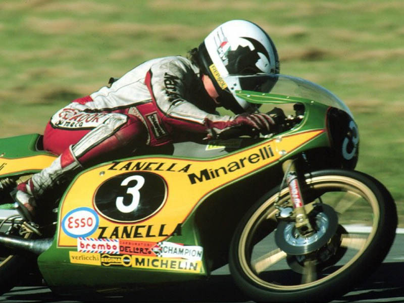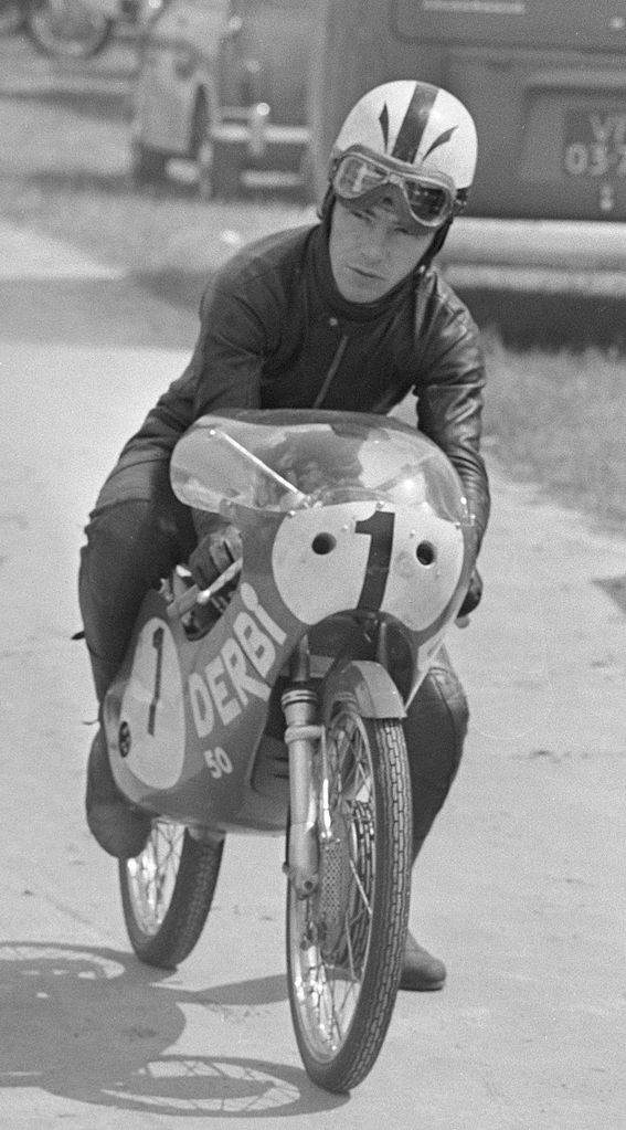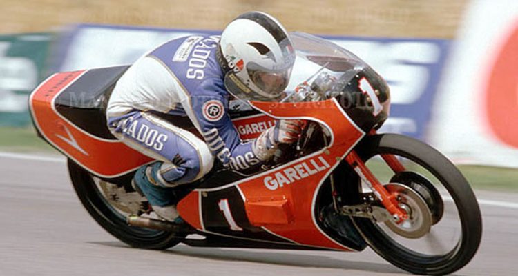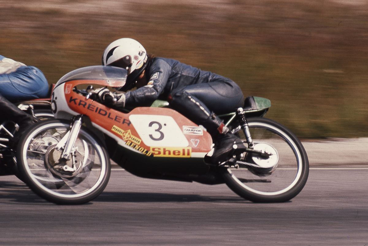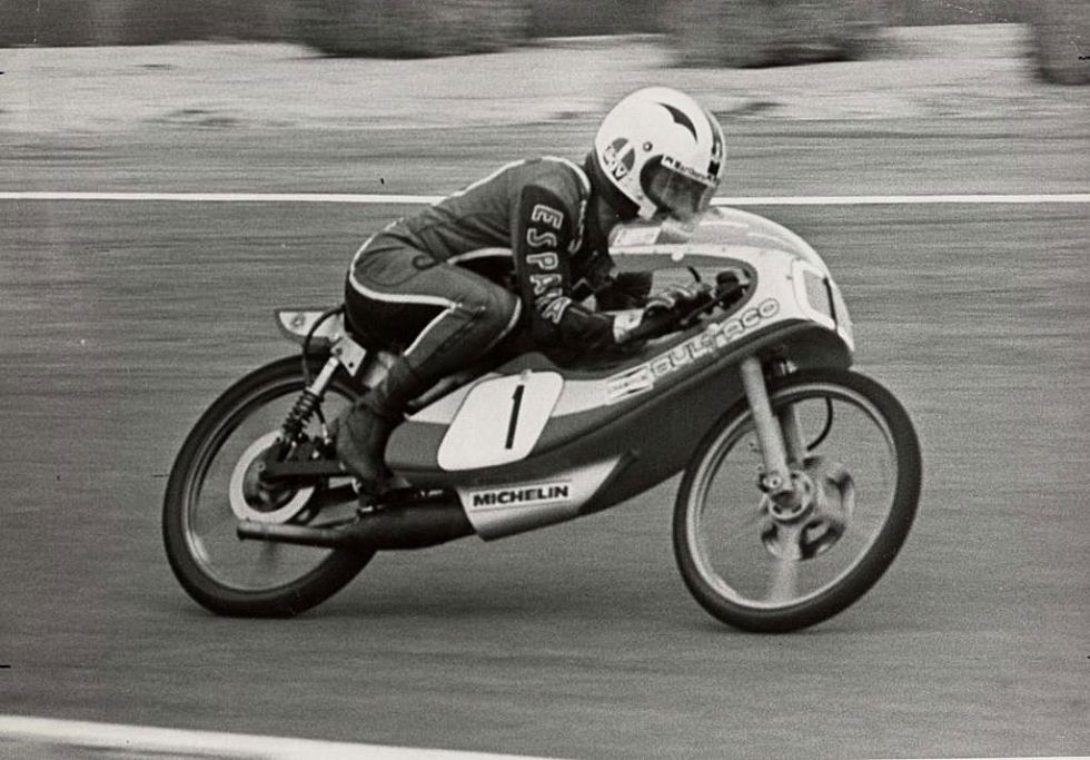Ángel Nieto con su Kreidler logrando su sexto título mundial con seis victorias y dos segundos puestos.