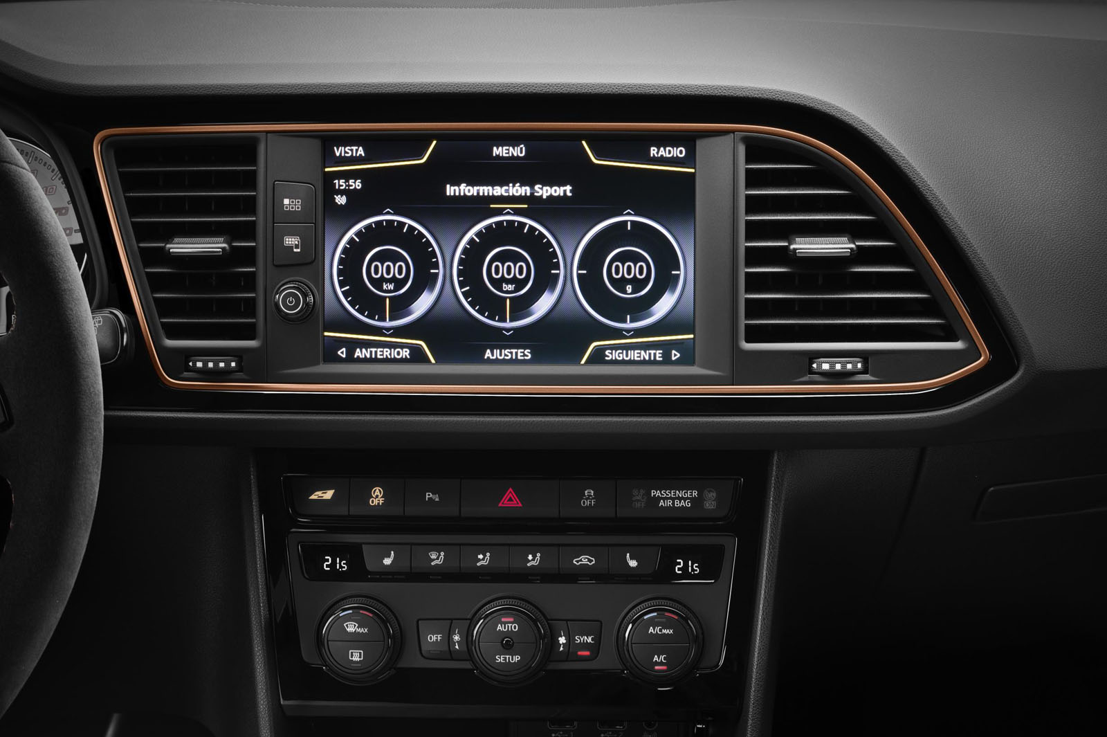En la pantalla central ofrece medidores de presión del turbo, de fuerzas G…