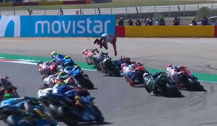 Lorenzo sale volando tras una caída peligrosísima en la primera curva