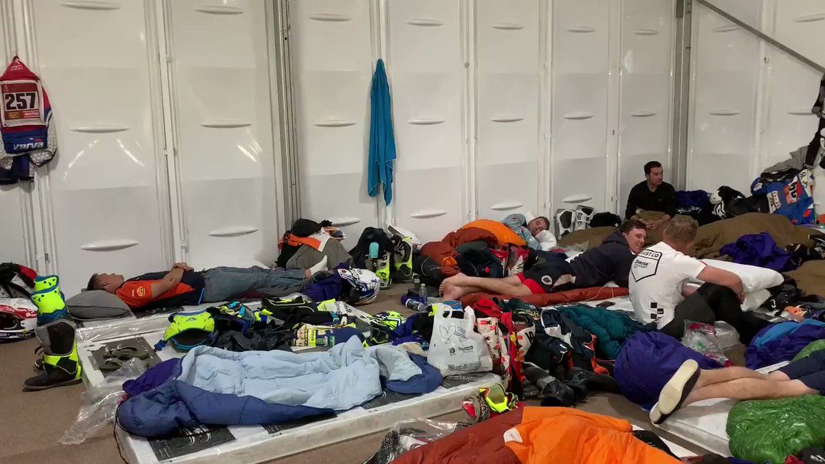 Así han tenido que dormir este miércoles los pilotos participantes en el Rally Dakar que se disputa en Arabia Saudí.