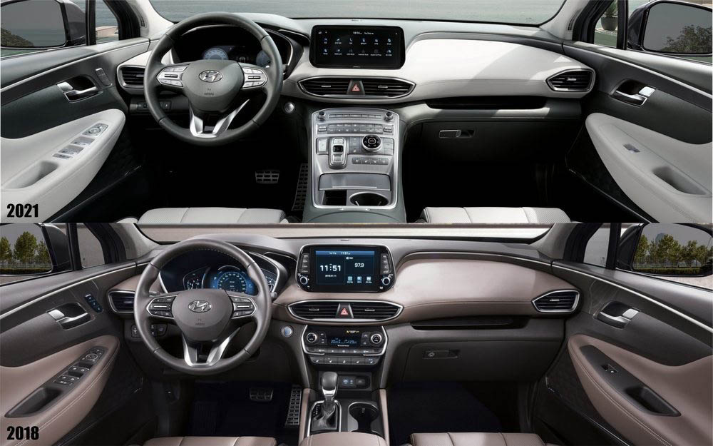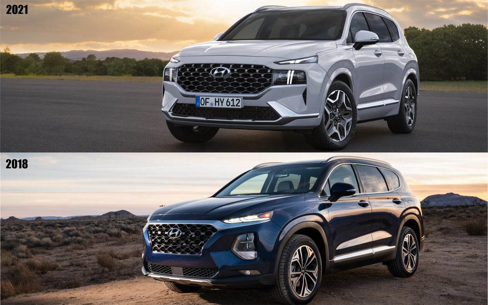El nuevo Santa Fe en la parte superior y el actual en la inferior.