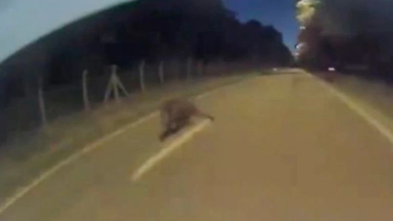 El jabalí invade la calzada y el Tesla, que circulaba a gran velocidad, consigue esquivar al animal. Una maniobra maestra, ya que parece casi imposible evitar el atropello.