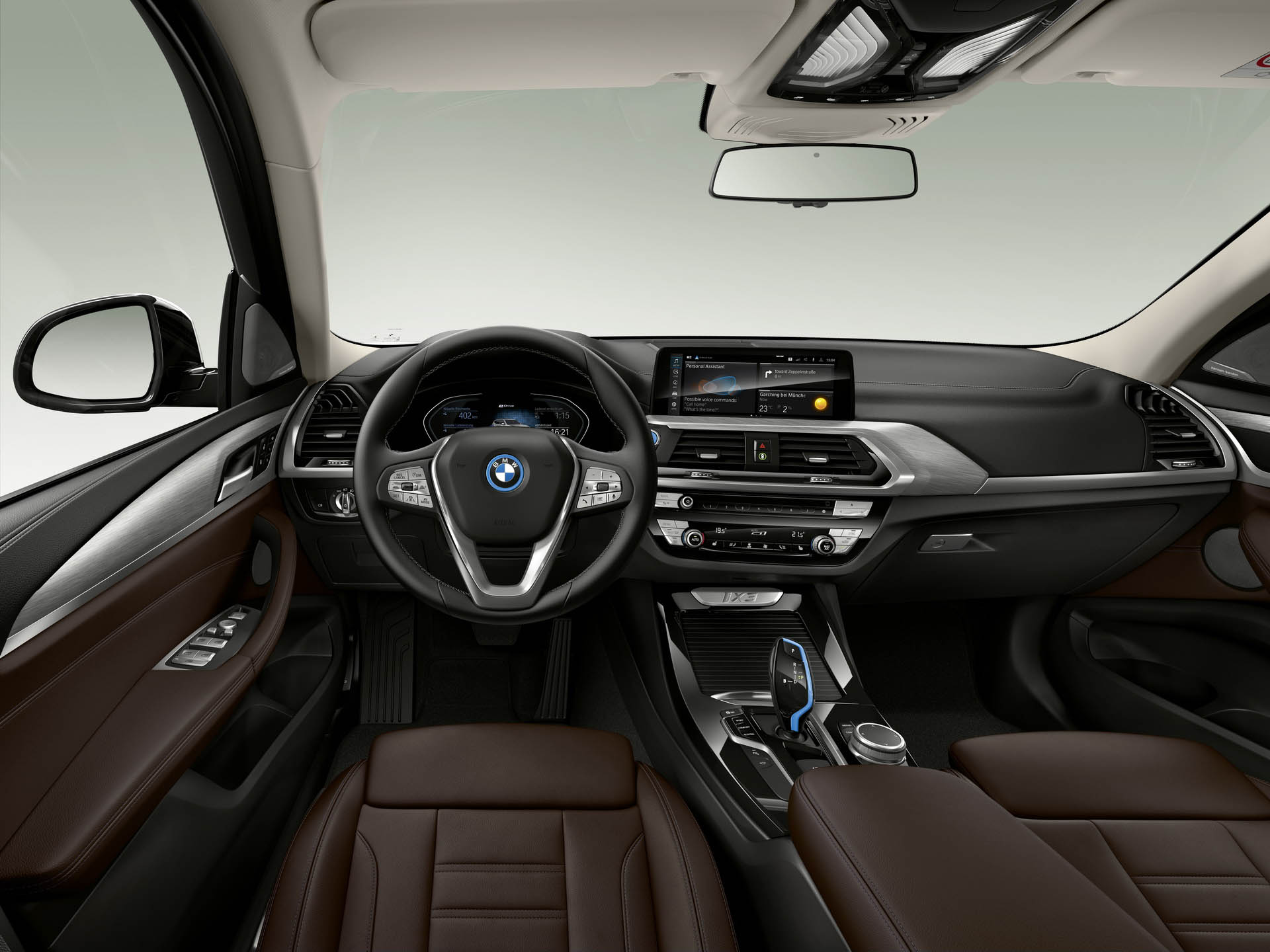 Al estar basado en el X3 corriente el interior no cambia mucho, salvo por distintos elementos propios de un eléctrico y algunos detalles en azul.