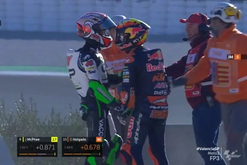 El final del tercer entrenamiento de Moto3 en el Gran Premio de la Comunidad Valenciana vivió unas escenas lamentables que implicaron a dos pilotos: Kaito Toba y Jaume Masiá.