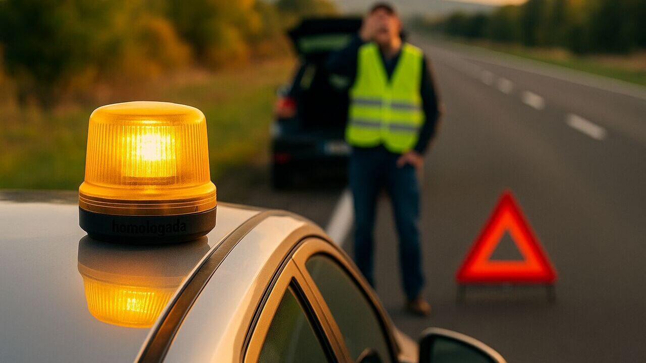 El motivo es sencillo: seguridad. Bajar del vehículo, sobre todo en autopistas o carreteras con tráfico intenso, siempre ha supuesto un riesgo. El conductor debía caminar por el arcén y colocar los triángulos a la distancia indicada, incluso de noche o bajo condiciones meteorológicas adversas. Esa maniobra, aparentemente inofensiva, ha provocado numerosos accidentes. Con la luz V16, todo cambia. Basta con encenderla y situarla en el techo para que comience a emitir una señal intermitente visible en 360 grados. Todo ello sin necesidad de abandonar el coche.