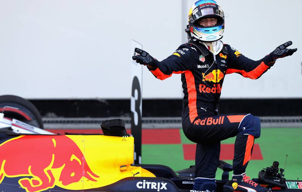 El safety car que salió tras el choque entre los dos monoplazas de Toro Rosso permitió a Red Bull dar la vuelta a la carrera. Fueron los más rápidos en reaccionar y antes de que nadie, sobre todo los de arriba, se dieran cuenta de la oportunidad que se abría, entraron a cambiar las gomas por otras más blandas y más nuevas lo que les dio un extra de velocidad y una gran superioridad respecto al resto de pilotos que ya llevaban los neumáticos con muchas vueltas en sus flancos. Tanto Mercedes como Ferrari, que llevaban toda la carrera intercambiando posiciones en los primeros puestos, no pudieron hacer nada sobre todo ante el empuje de Daniel Ricciardo que brilló con luz propia especialmente a la hora de adelantar y superar a sus rivales.