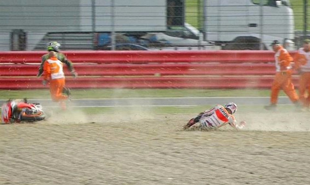 Muchos en el paddock, hasta la celebración del gran premio de Gran Bretaña, seguían pensando que la remontada de Marc Márquez era posible, que sólo alguien como el doble campeón del Mundo podía recortar medio centenar de puntos, pero la lluvia ha marcado el futuro para el piloto de Honda, por lo menos en lo que respecta a la presente temporada. La impredecible lluvia y la todavía más impredecible reacción de la moto bajo el líquido elemento han llevado a Márquez a la puzolana y esta vez sin que haya que recriminarle ningún fallo o exceso de ganas por llevarse el triunfo. No, en esta ocasión la suerte se fue con otro y el de Honda se tendrá que conformar a partir de ahora con la única motivación de ganar carreras porque el Mundial es cosa del equipo rival, las Yamahas.