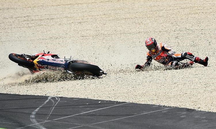La Honda de este año, más corta y demasiado nerviosa en las frenadas fuertes, no parece adaptarse demasiado bien al estilo de conducción de Márquez acostumbrado a cruzar la moto con suavidad en cada entrada a curva. Un trabajo extra para el vigente campeón que por otro lado, y pese a la caída, brindó unas primeras vueltas extraordinarias remontando tan sólo en la salida siete posiciones.