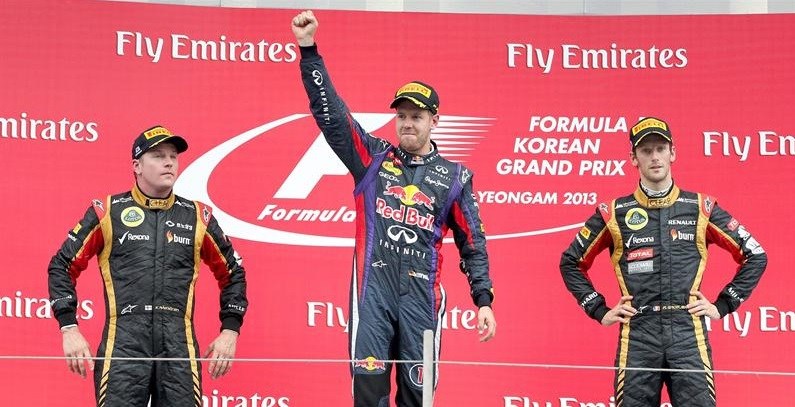 Después de las remontadas protagonizadas por Fernando Alonso en los últimos grandes premios, al asturiano se le acabó el repertorio de trucos. Ni la salida, ni la estrategia, ni su talento, nada ha sido suficiente para adelantar posiciones en la parrilla y seguir creyendo en el milagro. Un milagro que ya tiene fecha de caducidad, el próximo gran premio de Japón, donde si Alonso no puntúa Sebastian Vettel se anotará su cuarto Mundial consecutivo. Corea ha dejado una foto que parece fija, es decir, una nueva victoria del vigente campeón a quien, ni los dos safety car pudieron inquietar en su puesto de líder de la carrera. Una foto monótona y aburrida que no parece vaya a cambiar de aquí al final de la temporada. Aburrida, muy aburrida ha sido esta carrera matinal en la que sólo un par de adelantamientos, algún reventón y un incendio consiguieron que más de uno no se volviera a la cama. Pero fue más de lo mismo, o mejor dicho, fue peor porque esta vez el nuestro, Alonso, vio frustrada la ya habitual remontada.