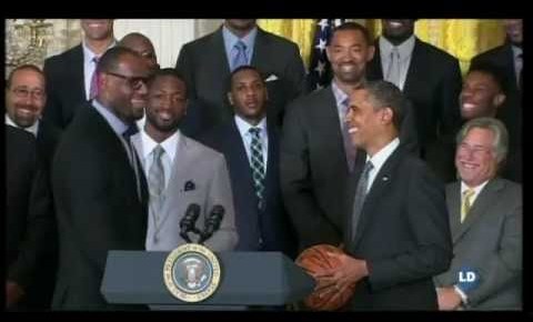 El presidente estadounidense, Barack Obama, ha recibido en la Casa Blanca al equipo de los Miami Heat, con LeBron James y Dwayne Wade a la cabeza, para felicitarles por la victoria la pasada temporada en la NBA.