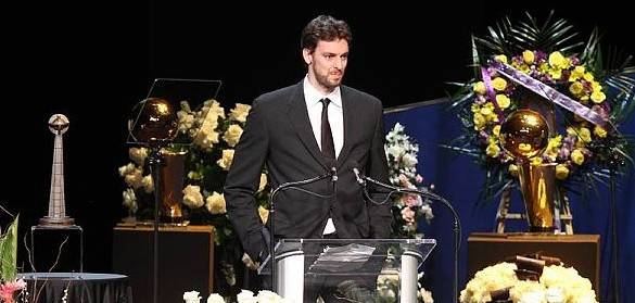 "Me siento muy afortunado de haber formado parte de su trayectoria y de esta gran familia. Tu memoria y tu carisma estarán siempre acompañándonos", añadió Gasol, quien explicó que los organizadores le habían pedido que hablara en español para así llegar a los aficionados cuya primera lengua es esa.