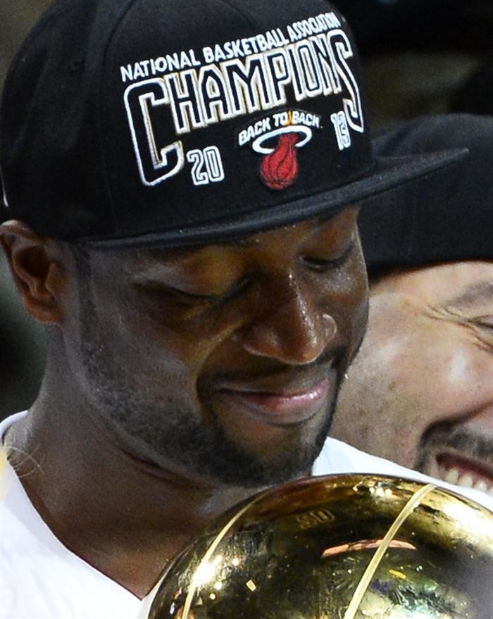El jugador Dwyane Wade de los Heat celebró emocionado la decisiva victoria ante los Spurs.