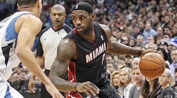 LeBron James logró un doble-doble de 21 puntos y 14 rebotes, ocho asistencias y recuperó dos balones que permitieron a los Heat de Miami ganar a domicilio por 103 a 82 a los Timberwolves de Minnesota.