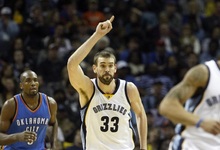 Los Grizzlies se impusieron a los Thunder con buenas actuaciones tanto de Marc Gasol como de Serge Ibaka.