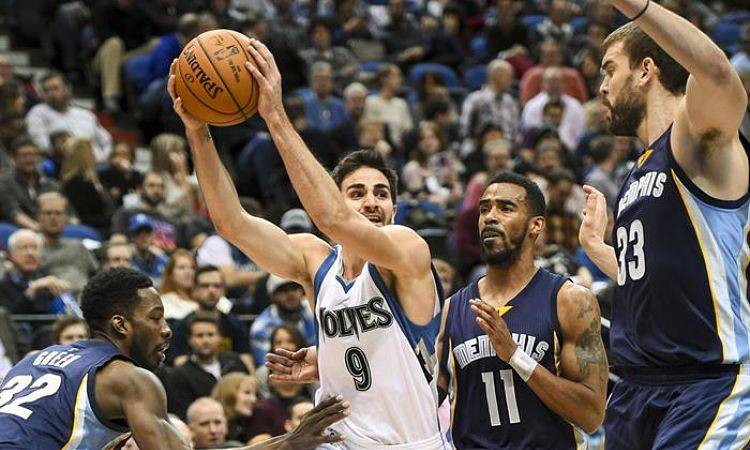 El base español Ricky Rubio anotó ocho de sus 17 puntos en el último cuarto y lideró el ataque de los Timberwolves de Minnesota por 90-89 sobre los Grizzlies de Memphis, de su compatriota Marc Gasol, que vieron rota su racha de ocho triunfos seguidos.
