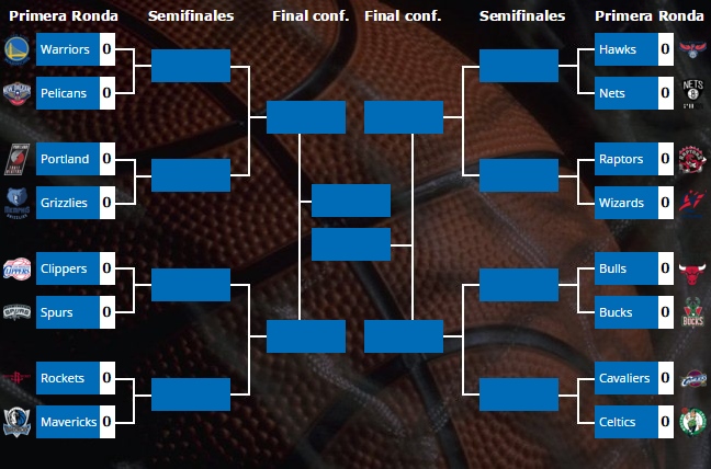 Los Golden State Warriors, primeros en el Oeste, se medirán en primera ronda a unos New Orleans Pelicans que han terminado octavos en detrimento de unos Oklahoma City Thunder -el equipo de Serge Ibaka- que terminaron novenos, ambos con marca de 45-37. Además, los Houston Rockets (2º) se enfrentarán a los Dallas Mavericks (7º) y Los Angeles Clippers (3º) a San Antonio Spurs (6º).