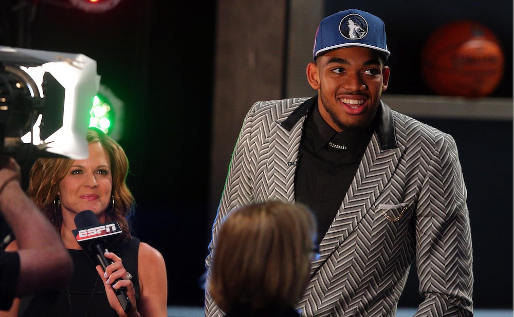 Con su elección, el equipo de Minnesota podría convertirse en el primer equipo en la historia en tener a tres selecciones número uno en su roster con el canadiense Anthony Bennett (2013), Andrew Wiggins (2014) y Towns (2015), en caso de que Bennett no sea traspasado como se ha especulado.