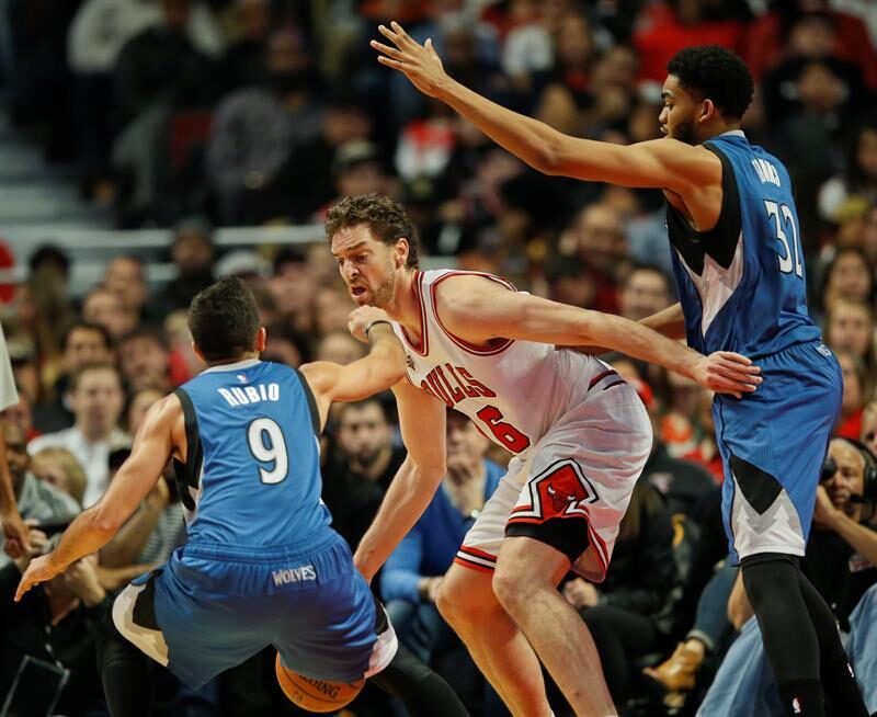 El veterano ala-pívot español Pau Gasol volvió a ser el líder de los Bulls, el jugador más completo y el único que respondió ante el mejor juego de equipo e individual de los Timberwolves, que rompieron racha de dos derrotas consecutivas.