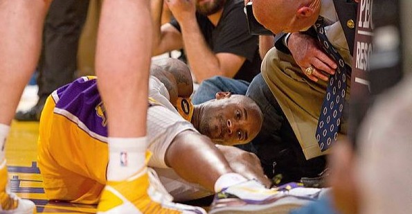 Kobe Bryant ha tenido lesiones importantes en su carrera como la que sufrió por la rotura del tendón de Aquiles del pie izquierdo en un partido contra los Golden State Warriors. Fue en 2013.