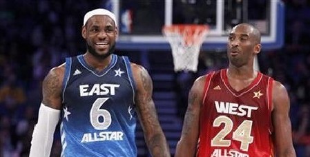 Lebron James y Kobe Bryant en un All Star. Kobe estuvo presente en 17 y fue el MVP en cuatro ocasiones.