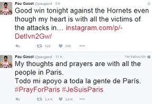 Pau mandó mensajes de apoyo por Twitter. | Twitter París marca las victorias de Pau y Marc Gasol en la NBA Pau Gasol mandó mensajes de apoyo antes y después de la victoria de los Bulls ante los Hornets.