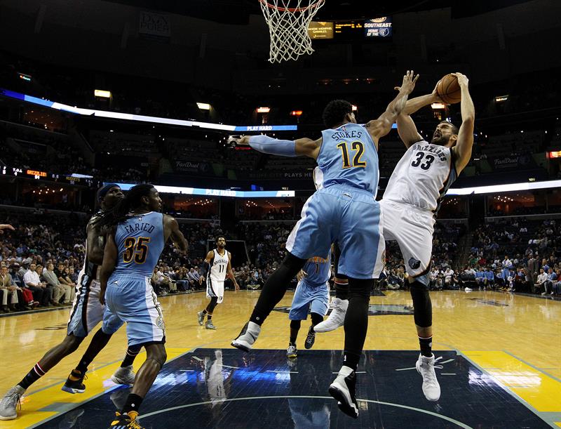 El pívot español Marc Gasol encestó en el momento en que concluía el tiempo reglamentario y hizo la diferencia en el triunfo conseguido por los Grizzlies de Memphis que se impusieron por 108-107 ante los Nuggets de Denver.